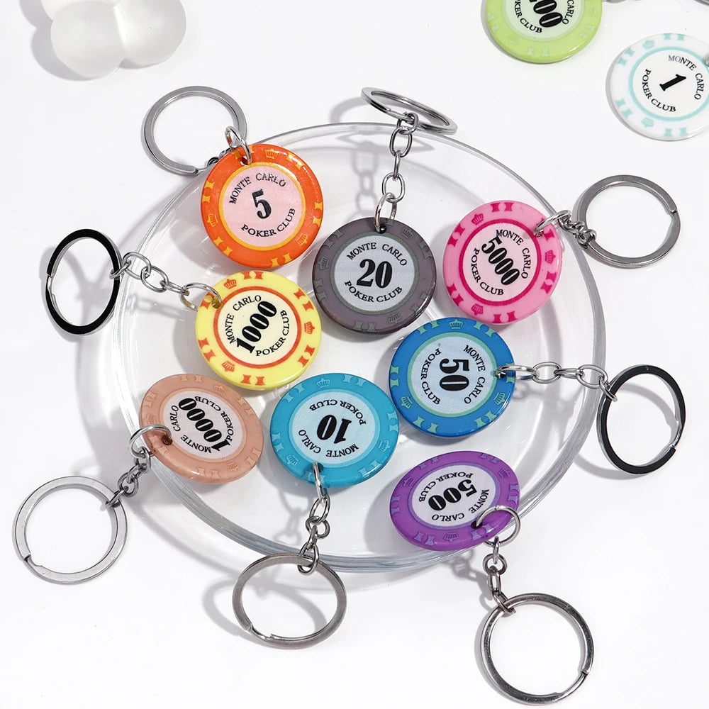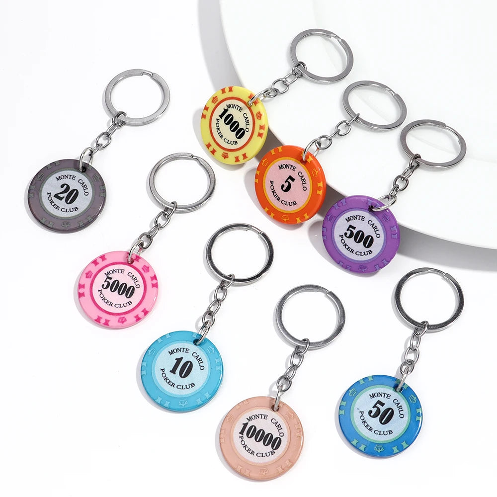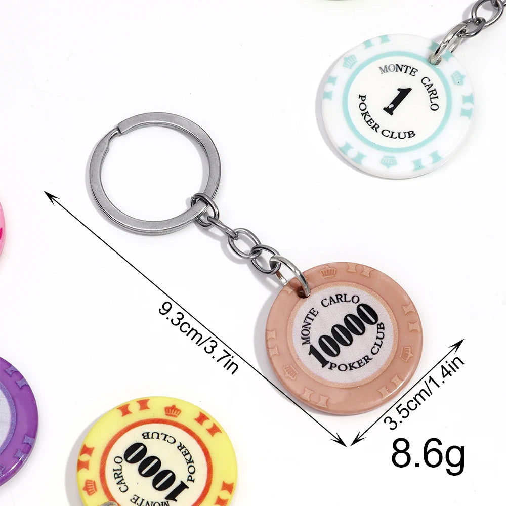 Authentic Poker Chip Design: Realistic detailing that captures the classic casino vibe in a compact keychain.